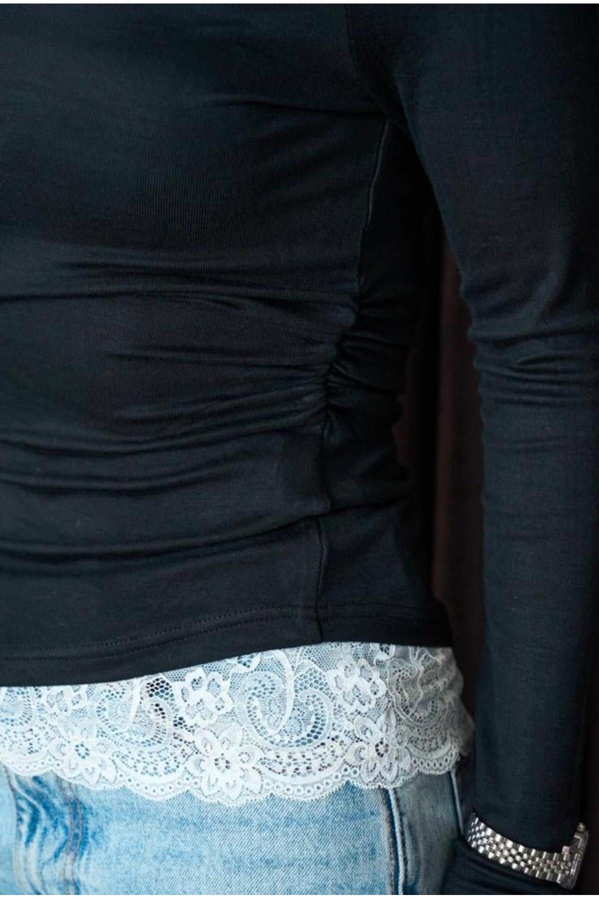 – Zarif dantel detaylarıyla süslenmiş, şıklığı ve rahatlığı bir arada sunan triko bluz.; – Her yaş grubuna hitap eden, zamansız tasarımıyla gardırobunuzun vazgeçilmezi olacak.; – Türkiye’de üretilmiş olup yerel malzemelerle kaliteye olan bağlılığımızı gösterir.; – Hem günlük kullanım hem de özel davetler için ideal, her ortama uyum sağlayabilen tasarım.; – Uzun boy kesimi ile bacakları olduğundan daha uzun gösterirken, vücut hatlarını zarifçe sarar.; – Modern ve slim fit kalıbıyla gün boyu konforlu bir deneyim sunar; hareket özgürlüğünüzü kısıtlamaz.; – Yüksek viskon içeriği sayesinde yumuşak dokusuyla cildinize nazik davranır ve nefes alabilir yapıda konfor sağlar.; – Uzun kollu tasarım soğuk havalarda ekstra koruma sunarken, şık görünümünüzden ödün vermezsiniz.; – Sade ve düz deseniyle kolayca kombinlenebilir; farklı aksesuarlarla kişisel tarzınıza göre uyarlanabilirlik kazandırır.; – Kayık yakası ile feminen çizgilere sahip olan bu bluz, boynunuza sofistike bir dokunuş katarken zarafeti ön plana çıkartır.; – Hem gündüz aktivitelerinizde hem de gece dışarı çıkarken rahatlıkla tercih edebileceğiniz çok yönlülükteki parça.; – Modal kumaşı sayesinde dayanıklılık ve uzun süreli kullanım vaad ederken aynı zamanda formunu koruyarak estetik görünümünü muhafaza eder.
