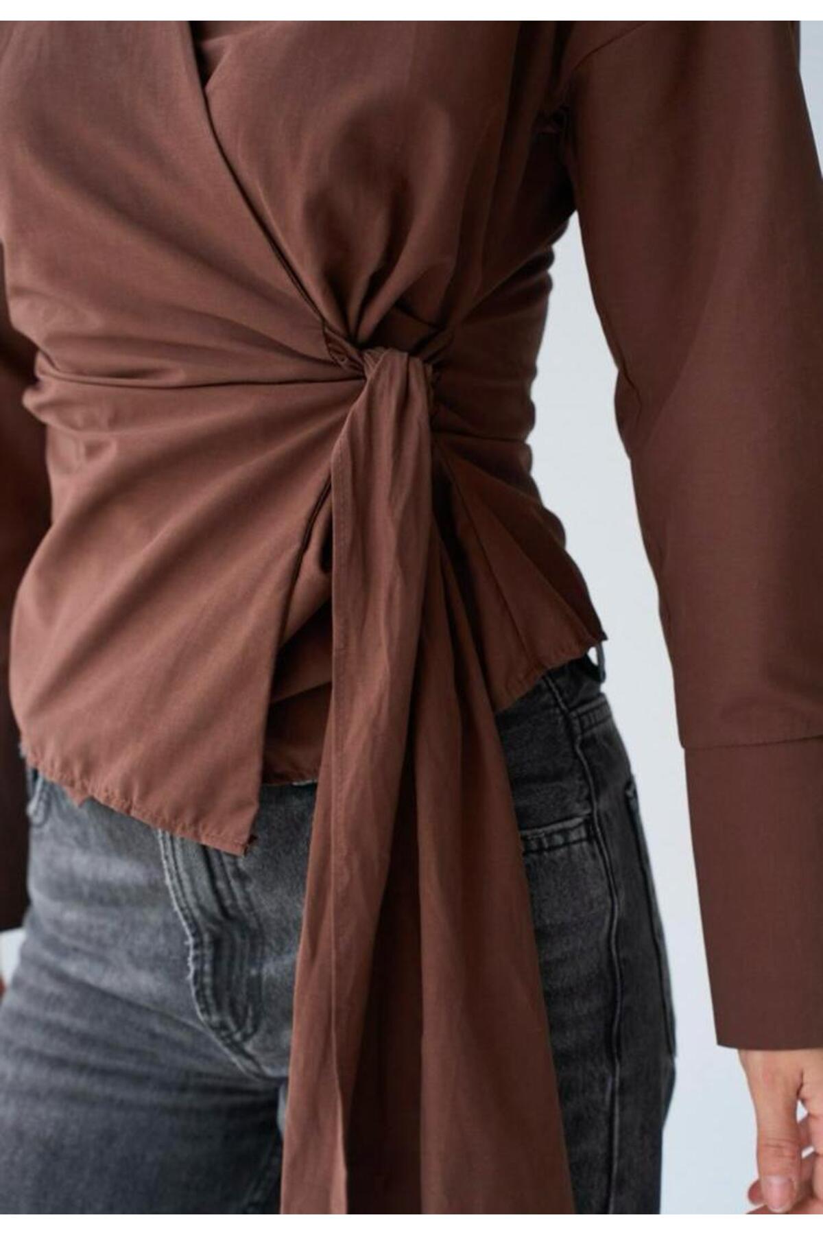 Düz Kahverengi Yandan Bağlamalı Kadın Gömlek